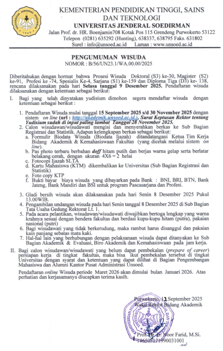 Pengumuman Wisuda Periode Desember 2025